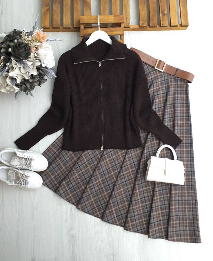 OLDQ KIVRIK YAKA FERMUARLI TRİKO HIRKA 8195-37-KAHVE