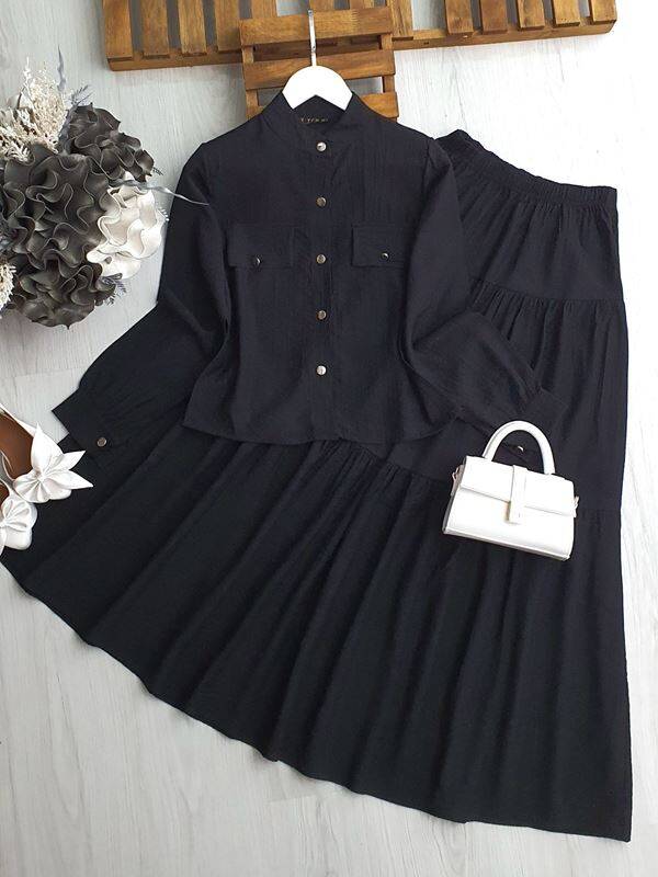 OLESA METAL DÜĞMELİ GÖMLEK KAT KAT ETEKLİ İKİLİ TAKIM A10-5-1615-01-SİYAH