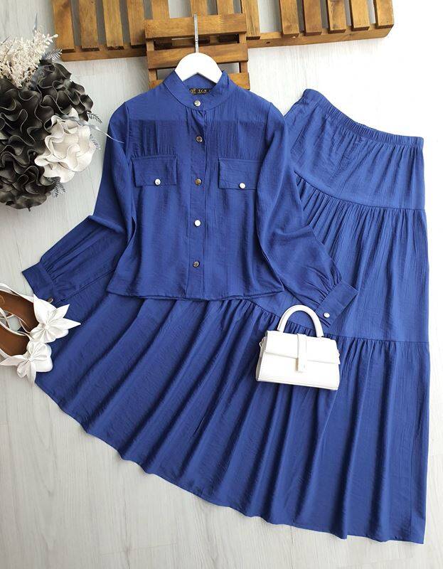 OLESA METAL DÜĞMELİ GÖMLEK KAT KAT ETEKLİ İKİLİ TAKIM A10-5-1615-11-İNDİGO