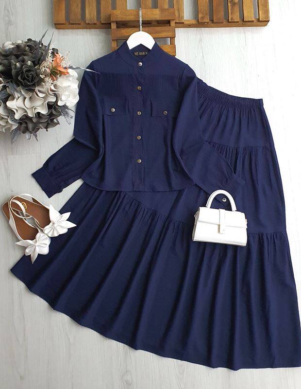 OLESA METAL DÜĞMELİ GÖMLEK KAT KAT ETEKLİ İKİLİ TAKIM A10-5-1615-12-LACİVERT