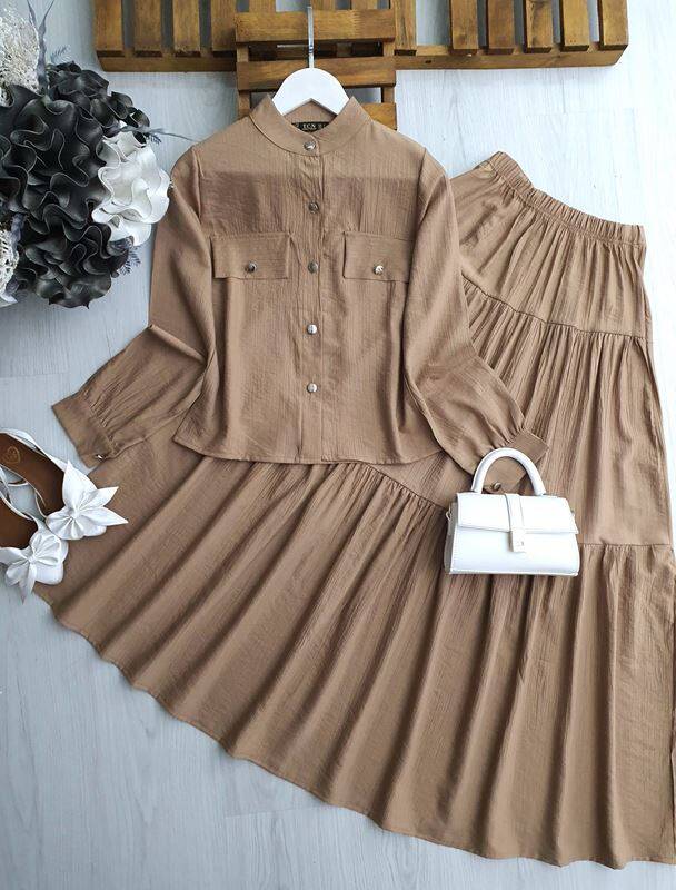 OLESA METAL DÜĞMELİ GÖMLEK KAT KAT ETEKLİ İKİLİ TAKIM A10-5-1615-48-BİSKÜVİ