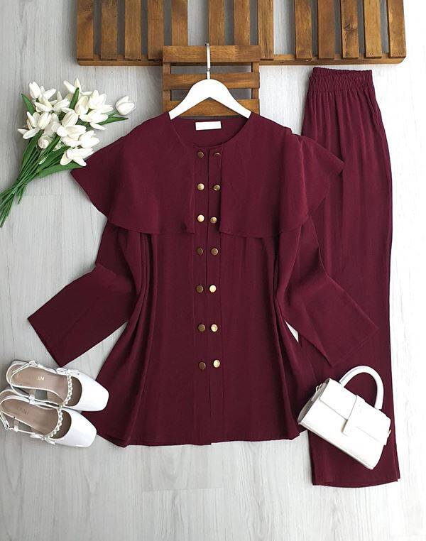 OLGEC ÇİFT SIRA DÜĞMELİ OMUZ PELERİN TAKIM 1728-04-BORDO