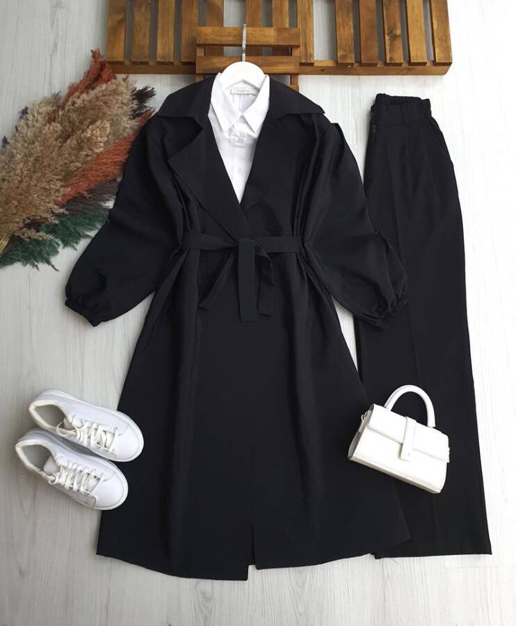 OLHES BELİ KEMERLİ CEPLİ BAHARLIK TRENÇ 3224-01-SİYAH