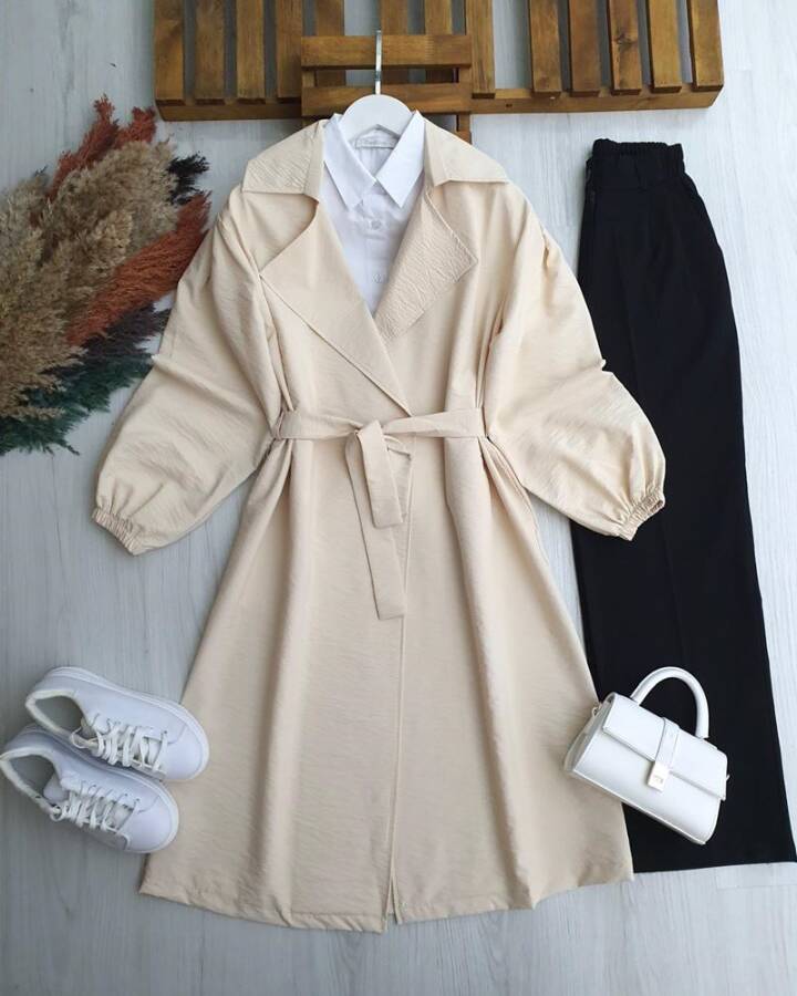 OLHES BELİ KEMERLİ CEPLİ BAHARLIK TRENÇ B3-1-3224-34-BEJ