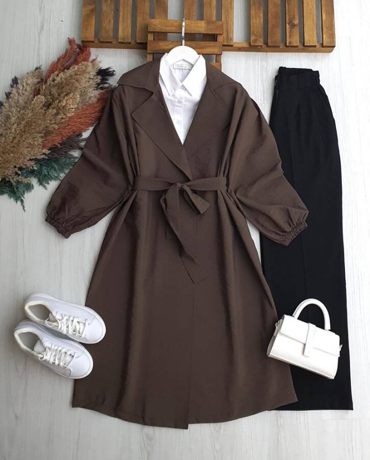 OLHES BELİ KEMERLİ CEPLİ BAHARLIK TRENÇ B3-1-3224-37-KAHVE