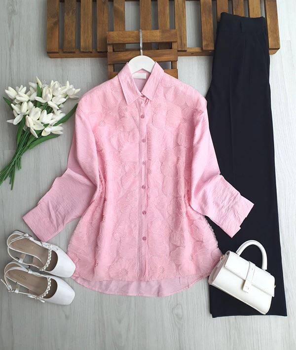 OLKE TÜL İŞLEMELİ GÖMLEK TUNİK B1-3-5675-05-PUDRA