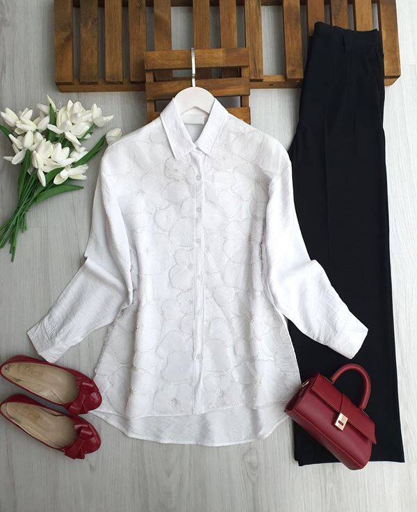 OLKE TÜL İŞLEMELİ GÖMLEK TUNİK B1-3-5675-20-BEYAZ