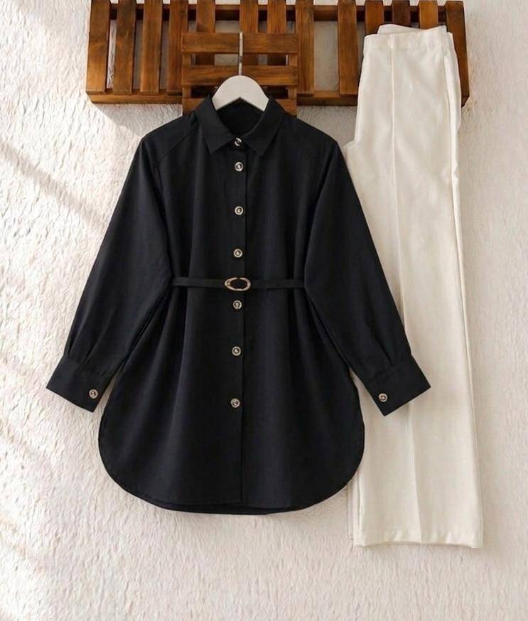 OLLE TOKALI KEMERLİ SALAŞ GÖMLEK TUNİK 5707-01-SİYAH