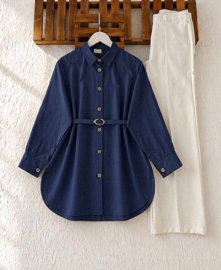 OLLE TOKALI KEMERLİ SALAŞ GÖMLEK TUNİK 5707-12-LACİVERT