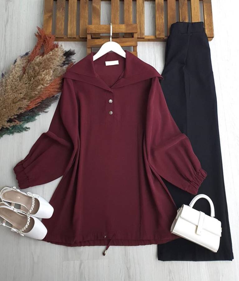 OLPES YARIM DÜĞMELİ ŞAL YAKA TUNİK B2-3-5672-04-BORDO