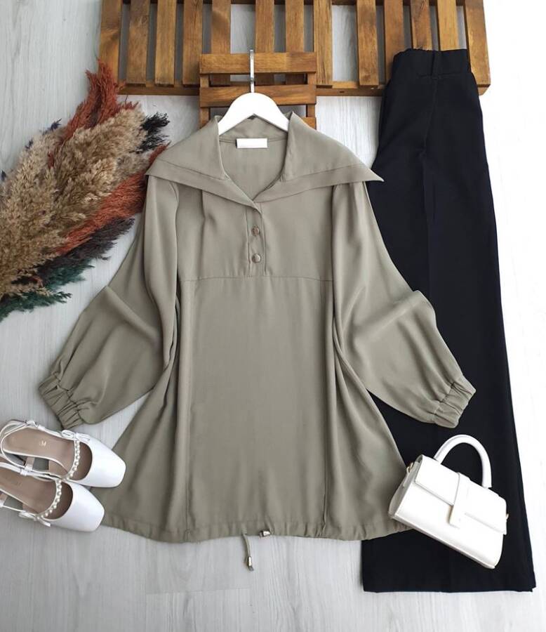OLPES YARIM DÜĞMELİ ŞAL YAKA TUNİK B2-3-5672-09-HAKİ