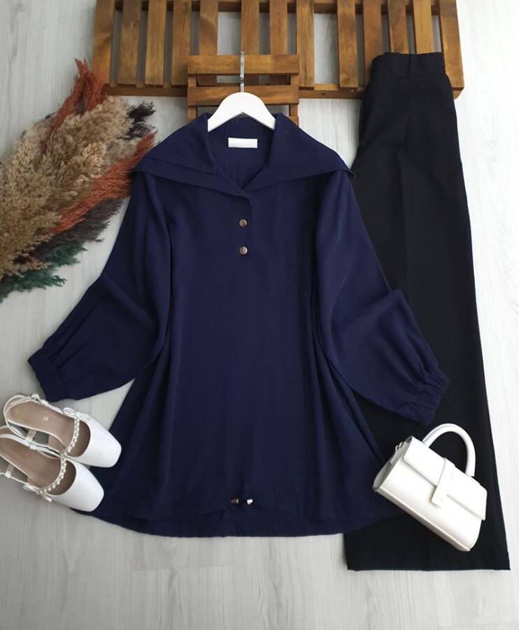 OLPES YARIM DÜĞMELİ ŞAL YAKA TUNİK B2-4-5672-12-LACİVERT