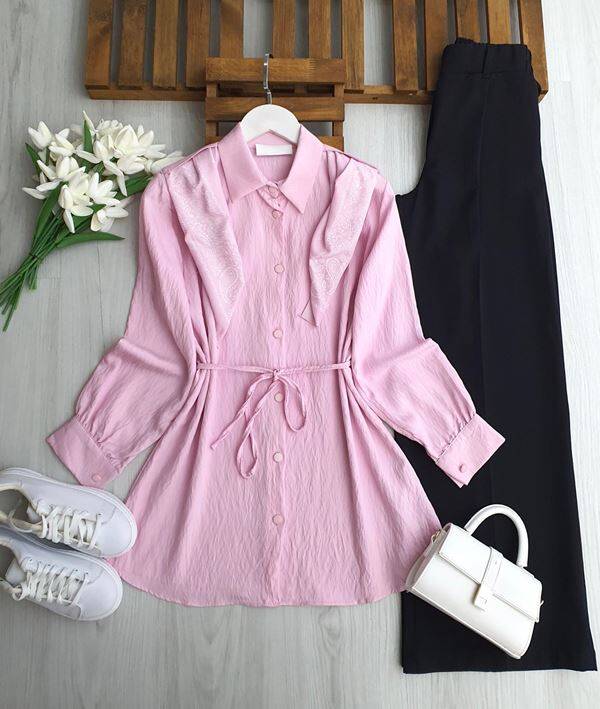 OLZA OMUZ ŞALLI GÖMLEK TUNİK 5679-05-PUDRA