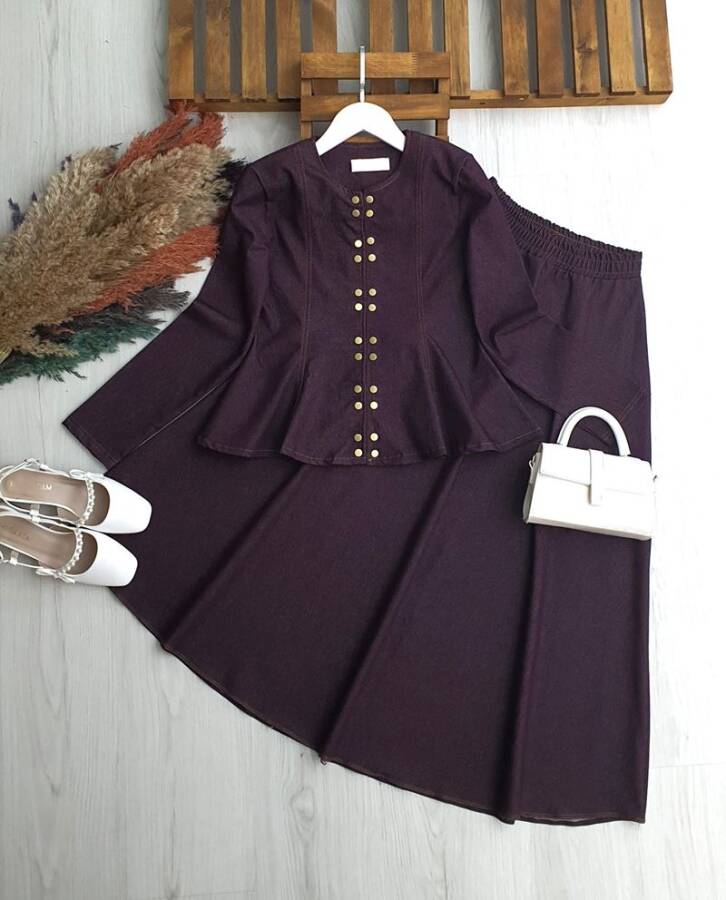 ONGES ÇITÇIT DÜĞMELİ PRENSES DİKİŞ KOT ETEKLİ TAKIM B3-1-1714-18-MÜRDÜM