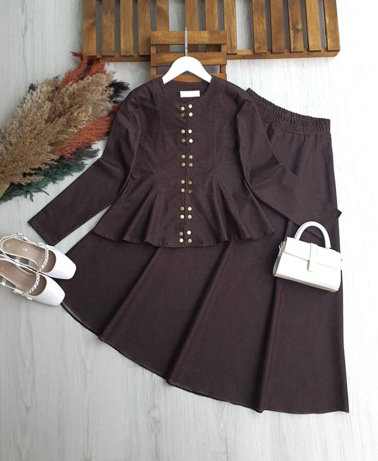 ONGES ÇITÇIT DÜĞMELİ PRENSES DİKİŞ KOT ETEKLİ TAKIM B3-1-1714-37-KAHVE