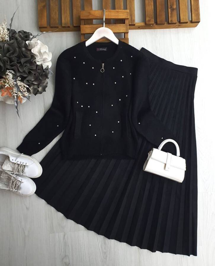 ONGES TAŞLI ÖNÜ FERMUARLI YUMOŞ HIRKA 8157-01-SİYAH