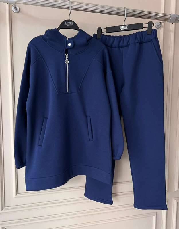 ONSA YAKA DÜĞMELİ YARIM FERMUARLI ÜÇ İPLİK İKİLİ TAKIM A8-3-1570-11-İNDİGO
