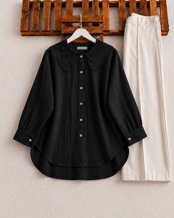 OPHA İŞLEMELİ TÜL YAKA GÖMLEK TUNİK A6-2-5685-01-SİYAH