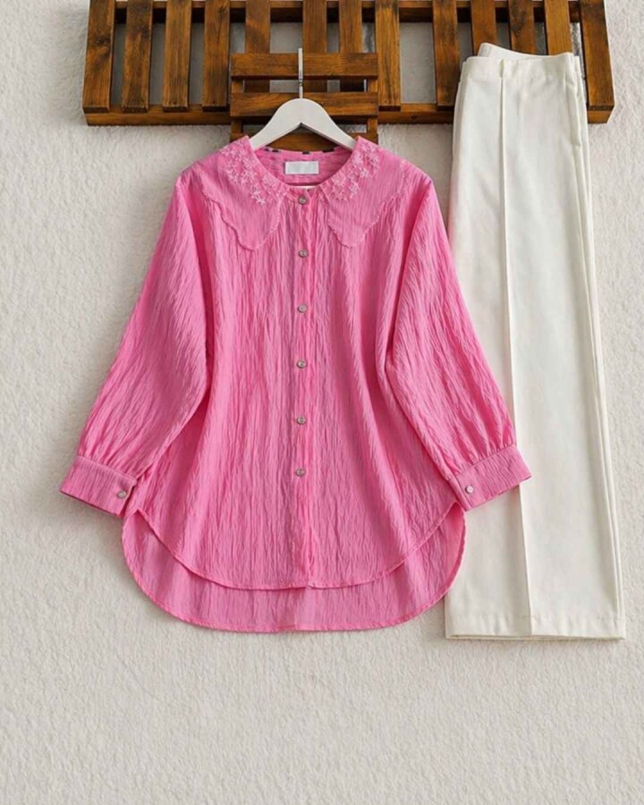OPHA İŞLEMELİ TÜL YAKA GÖMLEK TUNİK A6-2-5685-05-PUDRA