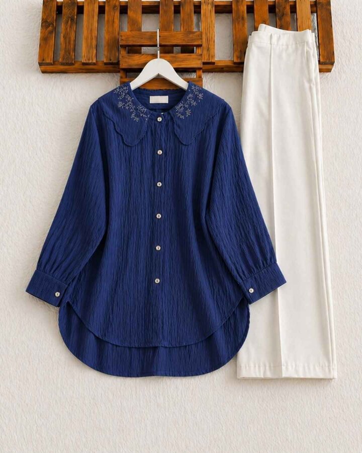 OPHA İŞLEMELİ TÜL YAKA GÖMLEK TUNİK A6-2-5685-12-LACİVERT