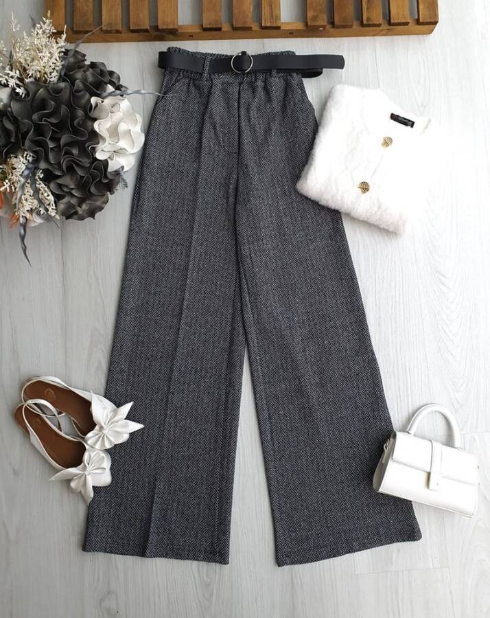 OSTE DERİ KEMERLİ BELİ LASTİKLİ BALIKSIRTI PANTOLON 6084-58-FÜME