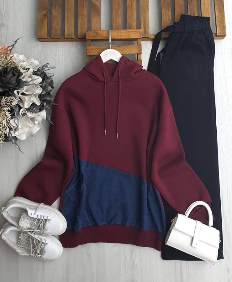 OVLE KOT PARÇALI KAPŞONLU ÜÇ İPLİK TUNİK A9-5-5634-04-BORDO