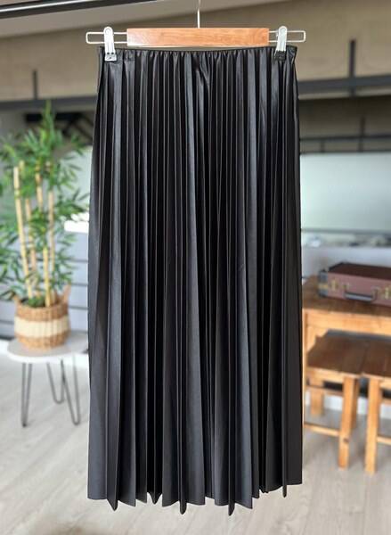 OVSA SIKI PİLİSELİ BELİ LASTİKLİ ETEK C12-6037-01-SİYAH