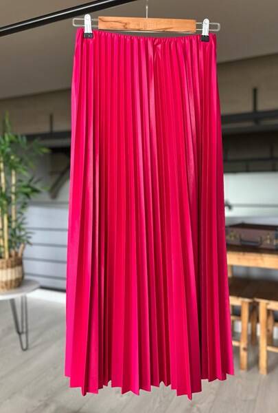 OVSA SIKI PİLİSELİ BELİ LASTİKLİ ETEK C12-6037-28-FUŞYA