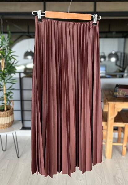 OVSA SIKI PİLİSELİ BELİ LASTİKLİ ETEK C12-6037-66-KOYU KAHVE