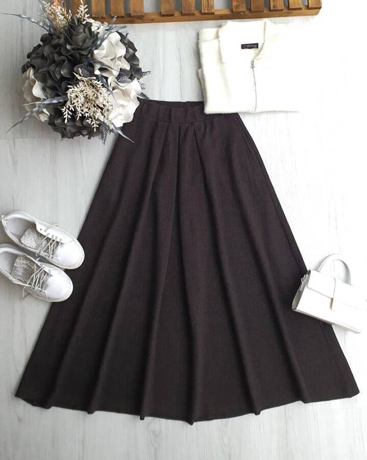 OVSELG CEPLİ PİLELİ BALIKSIRTI ETEK A6-1-6091-37-KAHVE