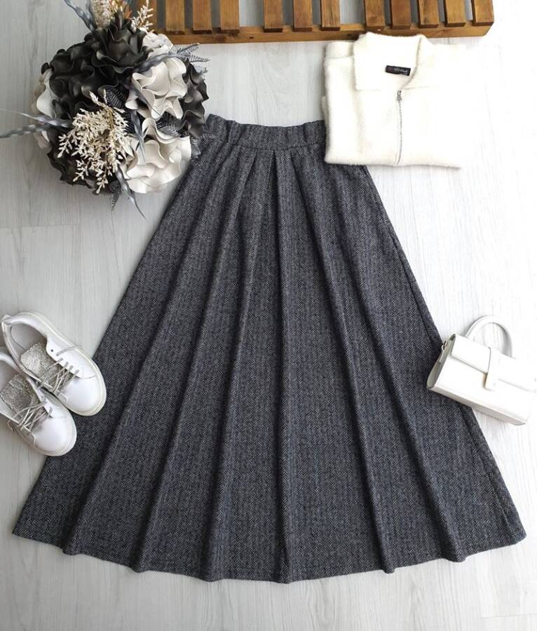OVSELG CEPLİ PİLELİ BALIKSIRTI ETEK A6-1-6091-58-FÜME
