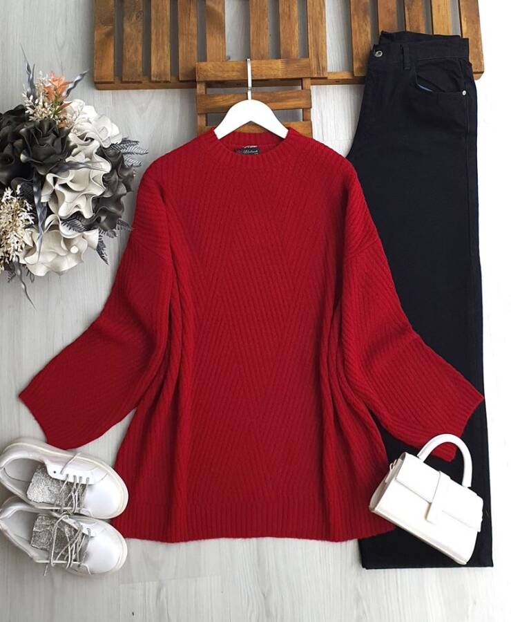 OYMES ÇİZGİ DESENLİ SALAŞ KAZAK 8190-03-KIRMIZI