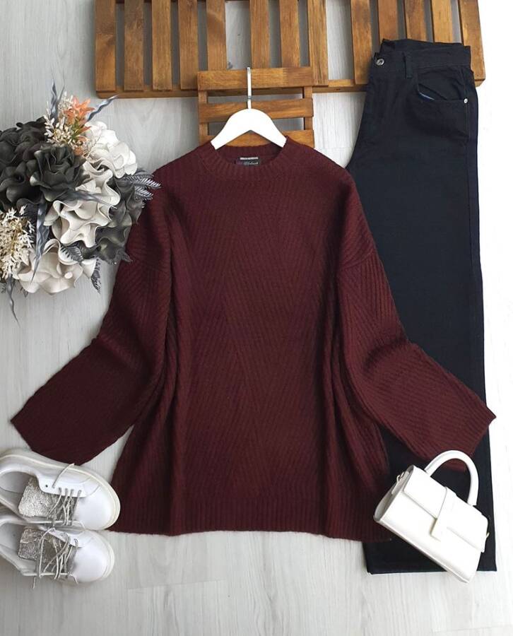 OYMES ÇİZGİ DESENLİ SALAŞ KAZAK 8190-04-BORDO
