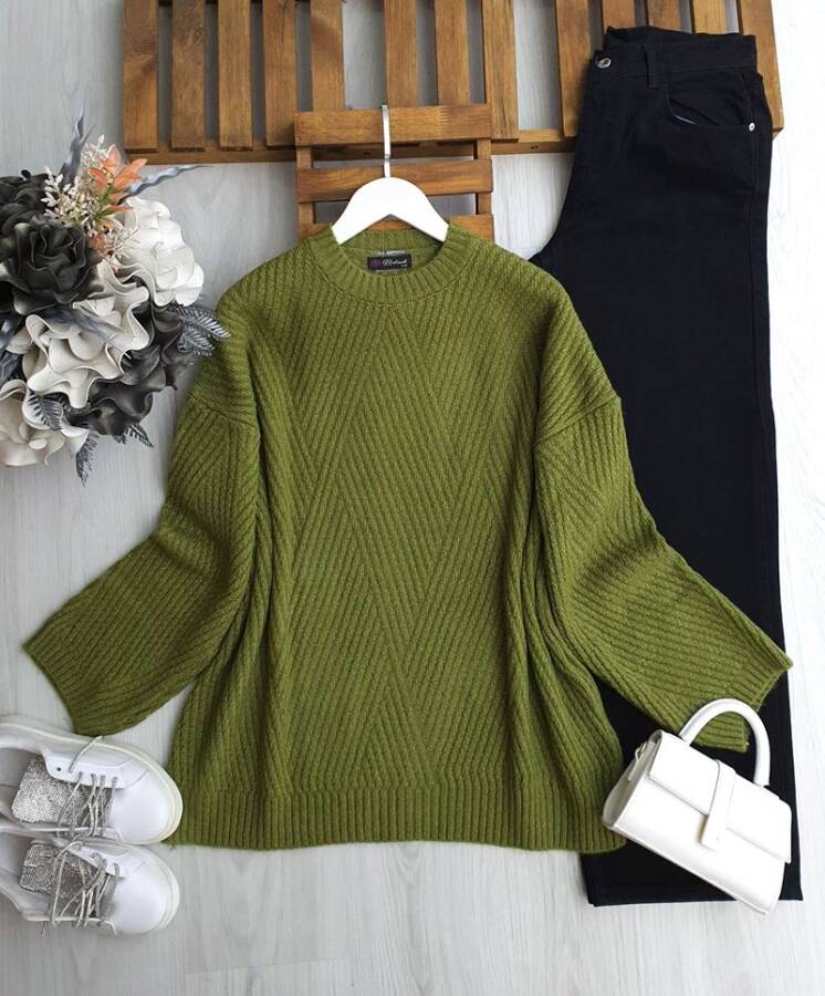 OYMES ÇİZGİ DESENLİ SALAŞ KAZAK 8190-07-YEŞİL