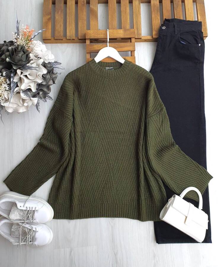 OYMES ÇİZGİ DESENLİ SALAŞ KAZAK 8190-09-HAKİ