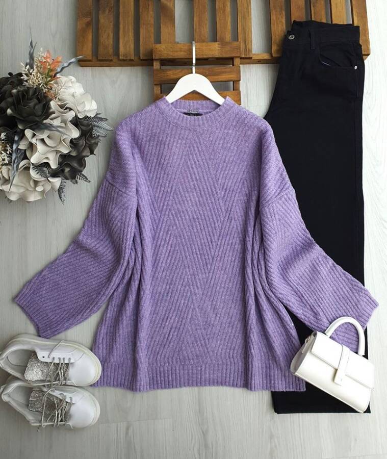 OYMES ÇİZGİ DESENLİ SALAŞ KAZAK 8190-32-LİLA