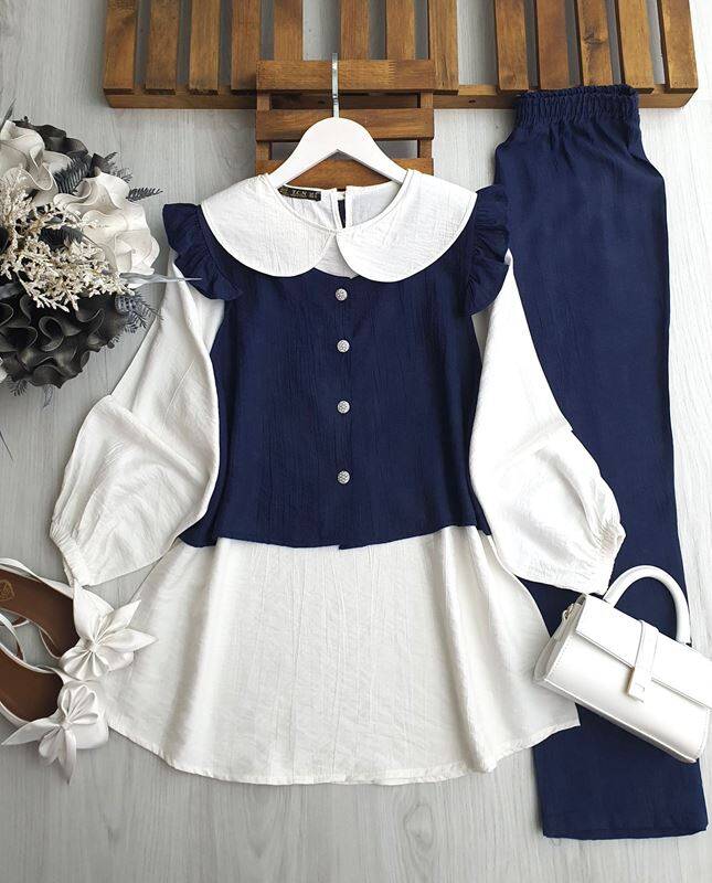 PECA BEBE YAKA İÇ TUNİK OMUZ FIRFIRLI YELEKLİ ÜÇLÜ TAKIM A10-1-1645-12-LACİVERT