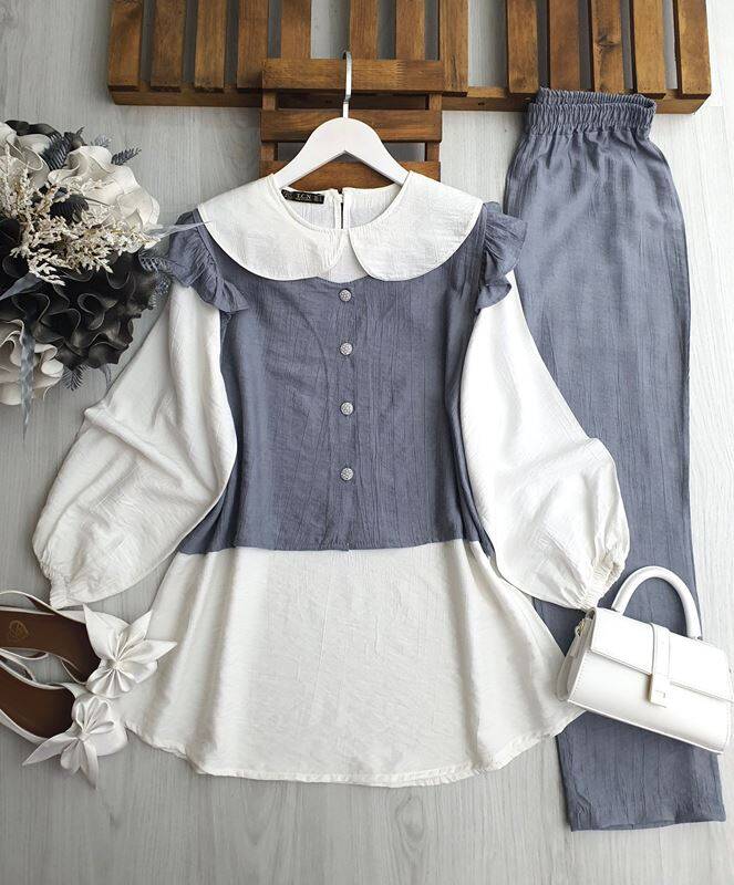 PECA BEBE YAKA İÇ TUNİK OMUZ FIRFIRLI YELEKLİ ÜÇLÜ TAKIM A10-1-1645-26-GRİ