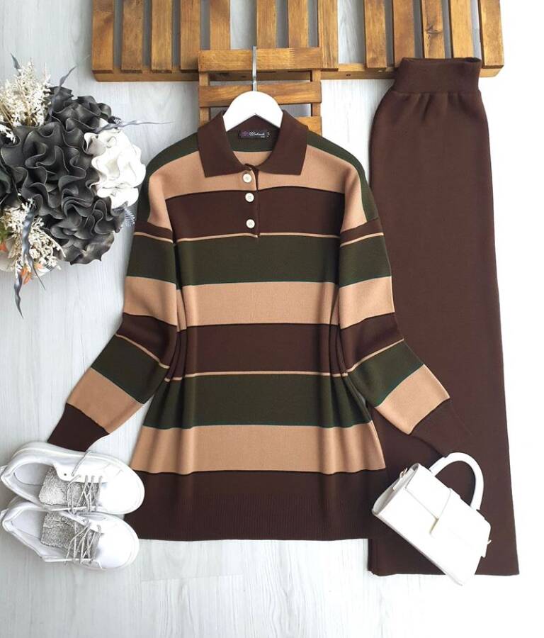 PEFD RENK GEÇİŞLİ YAKALI TRİKO TAKIM C1-8172-37-KAHVE