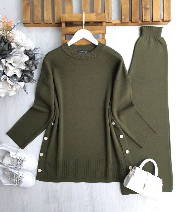 PELGAN YANLARI DÜĞMELİ TRİKO TAKIM B10-3-8176-09-HAKİ