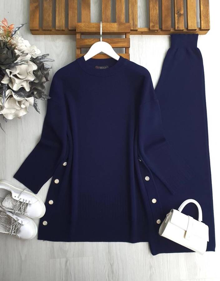 PELGAN YANLARI DÜĞMELİ TRİKO TAKIM B10-3-8176-12-LACİVERT