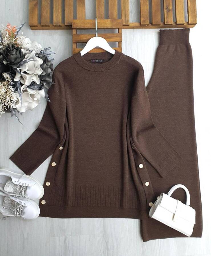 PELGAN YANLARI DÜĞMELİ TRİKO TAKIM B10-3-8176-37-KAHVE