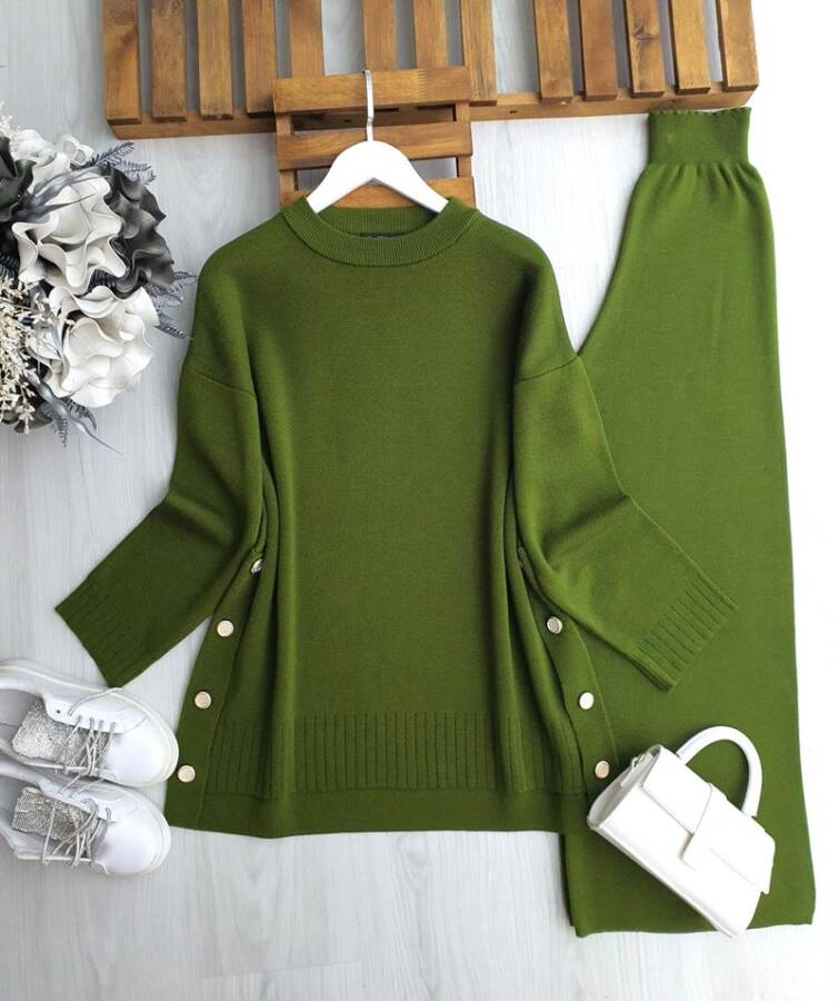 PELGAN YANLARI DÜĞMELİ TRİKO TAKIM 8176-70-YAĞ YEŞİLİ