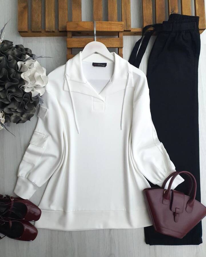 PELİM KOL PUL PAYET CEP VE ŞERİTLİ TUNİK 5629-20-BEYAZ