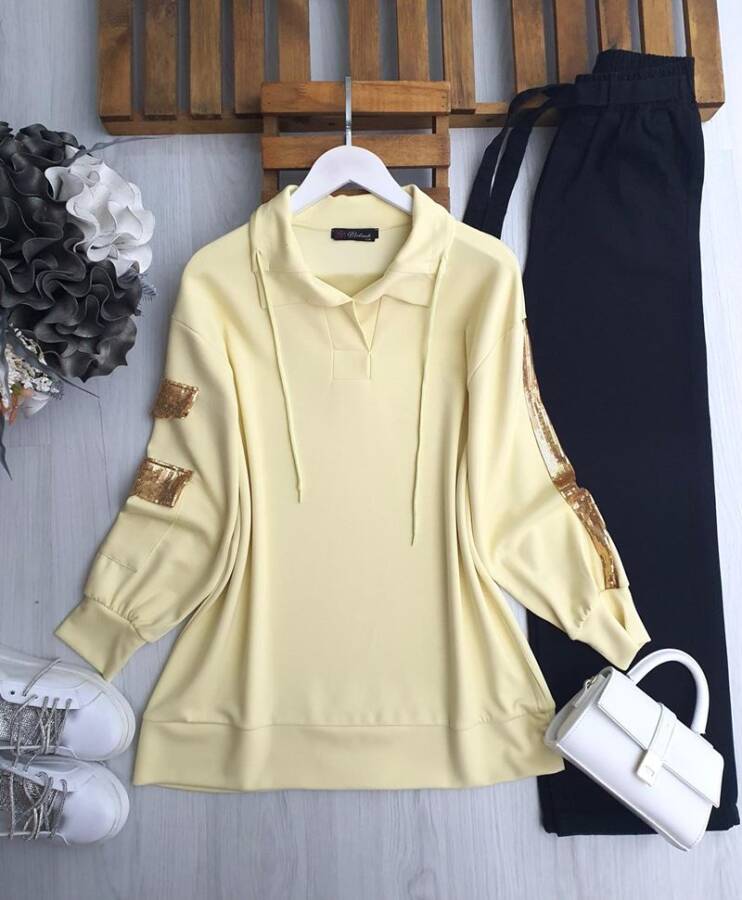 PELİM KOL PUL PAYET CEP VE ŞERİTLİ TUNİK 5629-23-SARI