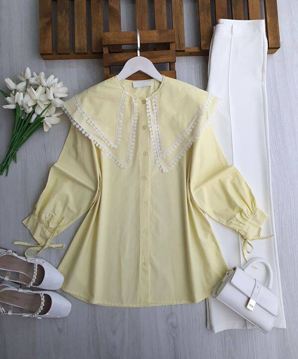 PESEH DANTELLİ ÇİFT PELERİN YAKA SALAŞ GÖMLEK TUNİK 5730-23-SARI