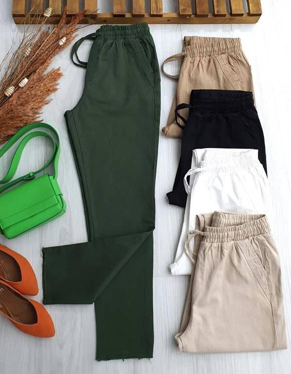 PUSE PAÇALARI PÜSKÜLLÜ BELİ LASTİKLİ GABARDİN PANTOLON A6-3-6046-09-HAKİ