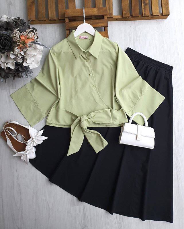 QENA VOLAN KOL ÖN BAĞLAMALI ÇAPRAZ DÜĞMELİ GÖMLEK B7-5-5547-07-YEŞİL