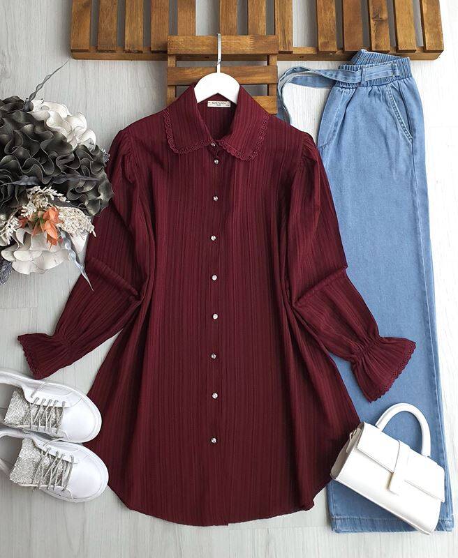 RUBAY YAKA VE KOL UCU DANTEL TUNİK C2-5525-04-BORDO
