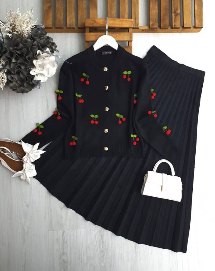SALDE KİRAZLI ÖNÜ DÜĞMELİ YUMOŞ HIRKA 8161-01-SİYAH